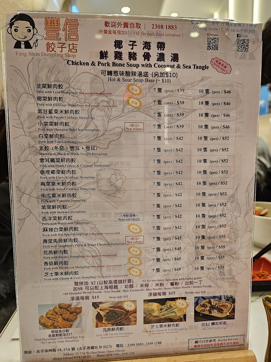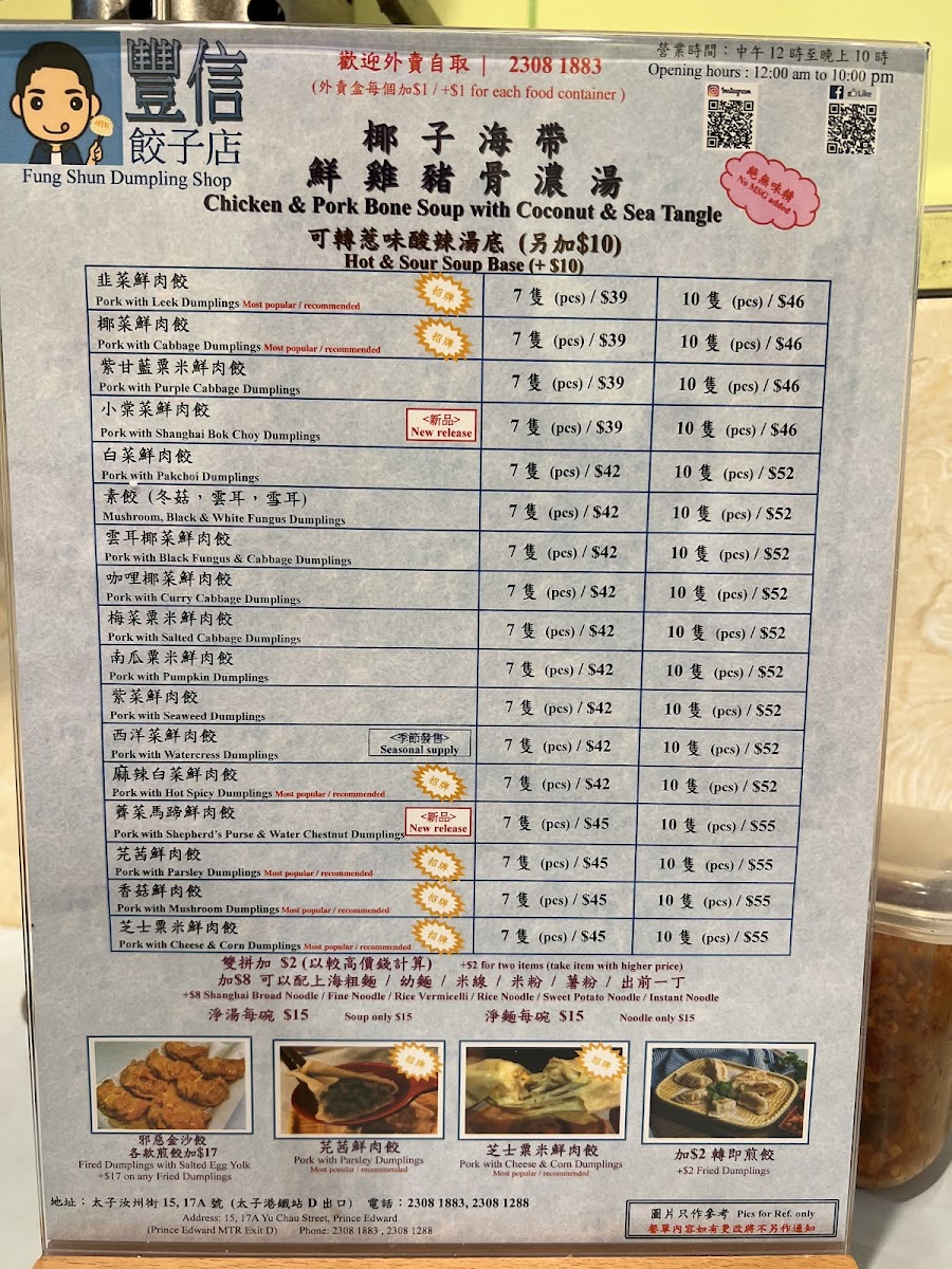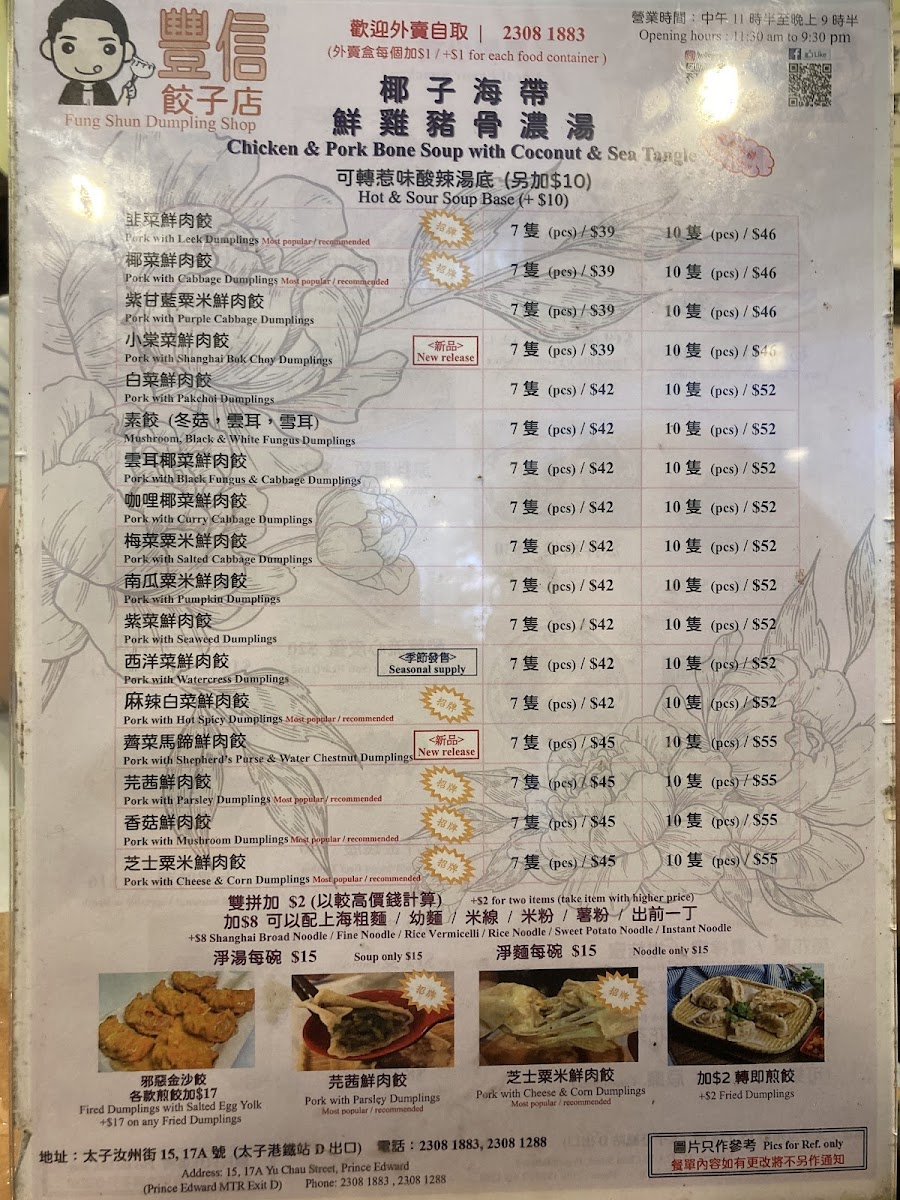 Welcome to Fung Shun Dumpling Shop, nestled in the heart of Mong Kok, where every dish tells a story of tradition and innovation. This bustling eatery is a haven for dumpling lovers, renowned for its wide array of dumplings, from the classic pork with leeks to inventive spins like the spicy mala dumplings. Customers rave about the exceptional flavors and unique offerings, including braised sweet soy chicken kidney and the cheese with corn and pork fried dumpling.